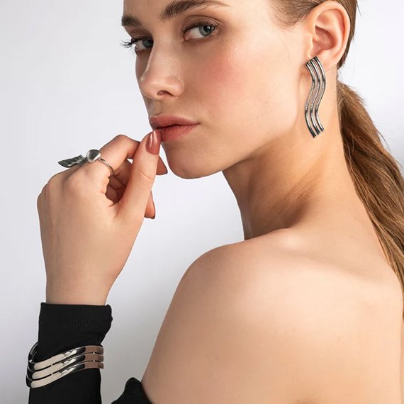 Pue yllesi keltakullattu Aaria-rannekoru ja ole juhlien jumalatar! Aaria-korusarja on ajaton ja raikas kokoelma upeita koruja. Tästä näyttävästä rannekorusta ja sarjan isoista korviksista syntyy upea juhlalook, ja sinut varmasti huomataan. Rannekorun leveys on 18mm ja sitä on saatavilla kahdessa koossa Ø59mm ja Ø64mm. Rannekorun takaosassa on ketju, jolla se lukitaan kiinni. Ketjun avulla rannekoru asettuu hyvin ranteeseen ja koru tuntuu mukavalta käytössä. Kuten kaikki korumme, myös Aaria-korusarjamme tuotteet valmistetaan vastuullisesti 100% kierrätetystä hopeasta ja kullasta omalla korutehtaallamme Kuopiossa.