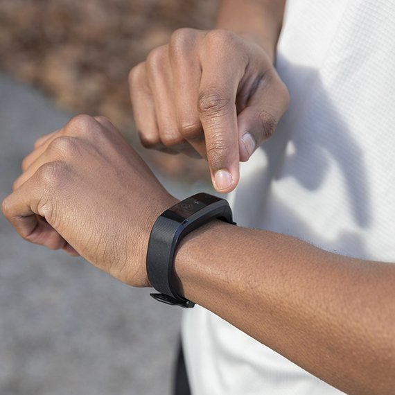 Vedenkestävä (IPX5) aktiivisuusranneke, jossa on mukava RCS-sertifioidusta kierrätetystä TPU-materiaalista valmistettu ranneke ja ABS-kehys (kierrätettyä materiaalia 35 %). 0,96” kosketusvärinäyttö, Bluetooth 5.0 ja ilmainen monikielinen sovellus (iOS 8.1 / Android 4.4+).