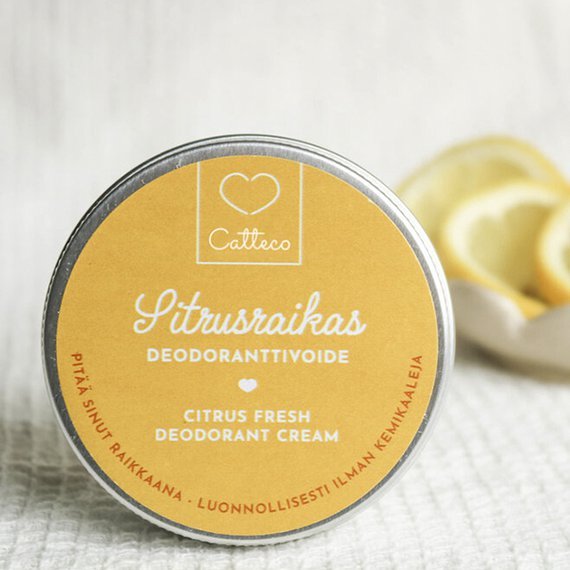 100% luonnollinen käsintehty deodoranttivoide ilman kemikaaleja tai alumiinia. Viisi erilaista vaihtoehtoa: sitrusraikas, ruusunraikas, mintunraikas, metsänraikas ja luonnonraikas.