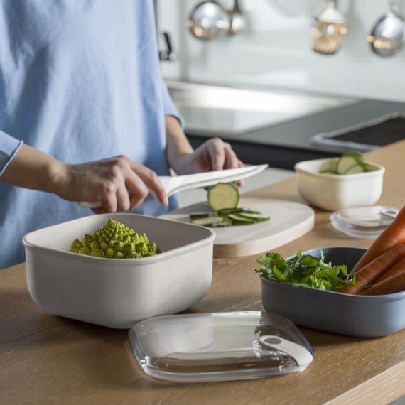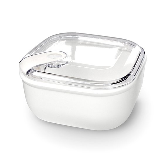 Jääkaapissa tärkeintä on ruoan järjestys ja tunnistaminen. Omadan eväsrasia tarjoaa tyylikkään läpinäkyvän kannen, joka helpottaa sisällä olevan ruuan tunnistamisen. Lisäksi tuotteen neliön muotoinen muotoilu mahdollistaa kaiken käytettävissä olevan tilan. Eväsrasiassa on patentoitu sulkujärjestelmä ja tiiviste, jonka ansiosta tuote on 100 % vuodonkestävä, vaikka se kallistuisi. Tuote on mikroaaltouunin ja astianpesukoneen kestävä. Mitat 16 x 16 x 8,7 cm.