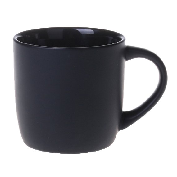 Erittäin suosittu mainosmuki, jossa on moderni, matta lasite. Kiiltävä, värikäs sisäpuoli luo erinomaisen kontrastin mustan satiinisen ulkopinnan kanssa. Toimitusaika vedoksen hyväksymisestä noin 5 vkoa. Hinnat sisältävät mukin ilman painatusta, pyydäthän tarjouksen haluamallesi painatukselle erikseen.