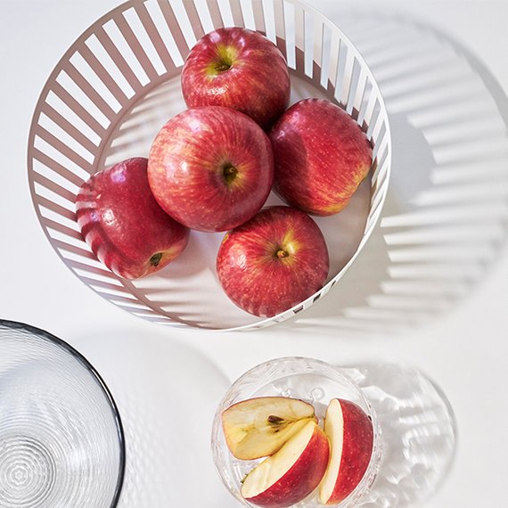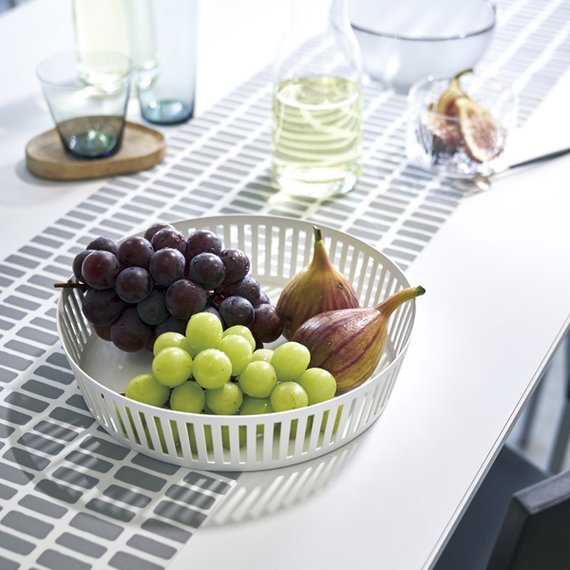 Tower-sarjan mattapintainen hedelmäkori näyttää upealta esimerkiksi aamiais- tai brunssipöydässä. Koriin mahtuu reilusti hedelmiä ja se sopii hyvin myös leipäkoriksi. Valon lävistäessä korin aukot, syntyy pöydän pintaan kauniita varjoja. Valmistettu jauhemaalatusta teräksestä. Mitat 25 x 25 x 5 cm. Paino 0,5 kg.