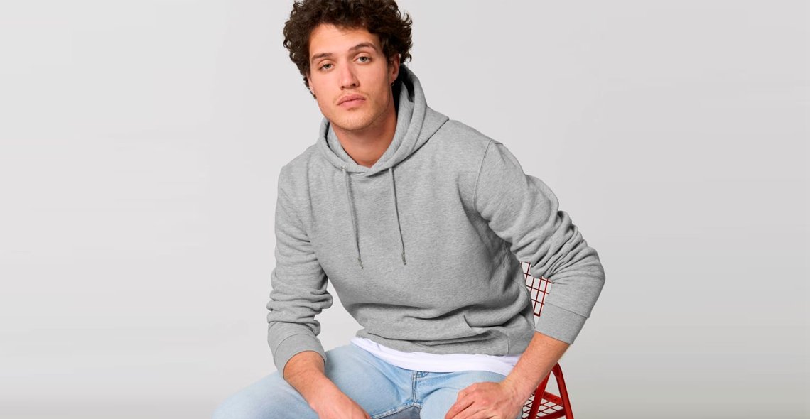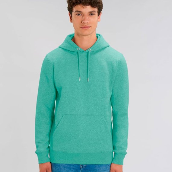 Huppari kierrätetystä polyesteristä (15 %) ja orgaanisesta, rengaskehrätystä kampapuuvillasta (85 %). Ryhdikäs, kaksikerroksinen huppu, metalliset narunreiät, pyöreät kiristysnarut metallisilla päillä ja kengurutasku edessä. Paino 350 g/m². Koot XXS-5XL.