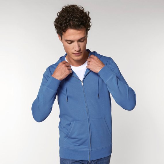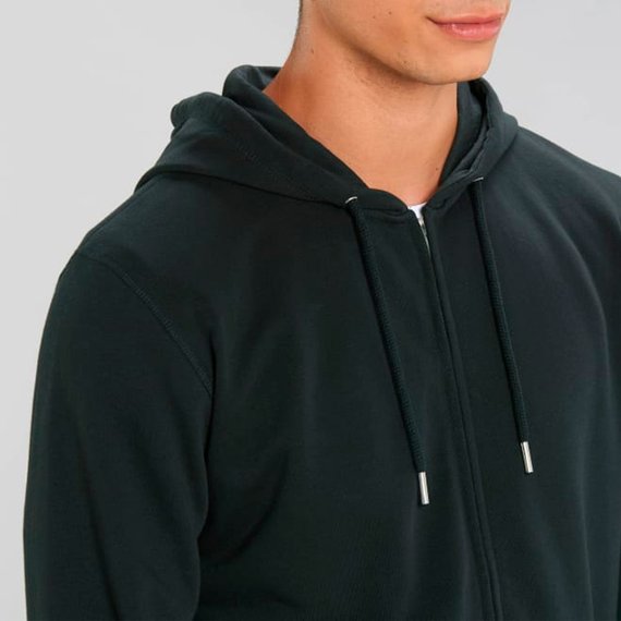 Huppari vetoketjulla kierrätetystä polyesteristä (15%) ja orgaanisesta, rengaskehrätystä kampapuuvillasta (85%). Hupparin hupussa kiristysnauhat sekä edessä taskut. Joustinneuletta hihansuissa ja helmassa. Paino 300 g/m². Koot vaaleille XXS-3XL ja värillisille XXS-4XL.