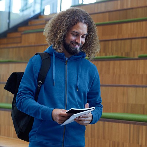 Monikäyttöinen ja mukava. Tämä vetoketjullinen collegehuppari on mukava ja rento vapaa-ajan vaate. Uudistetussa mallissa korkea kaulus lämmittää tehokkaasti. Huppua saa tarvittaessa kiristettyä nauhalla ja hihansuiden sekä helman resori suojaavat tuulelta. Laadukas materiaali kestää kulutusta, ja kankaan harjattu sisäpuoli tuntuu samettisen pehmeältä iholla. Koot S-6XL. 60 % puuvilla, 40 % polyesteri. 300 g/m². OEKO TEX sertifioitu.