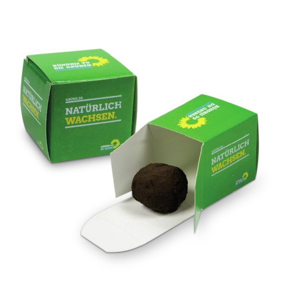 Istutuspallot, jotka sisältävät kesäkukkia, multaa ja sävyjauhetta. Heitä pallo maahan ja kastele istutusta ei tarvita. Mainoslaatikko sisältää yhden istutuspallon. Laatikon koko 14 x 8 x 5 cm. Paino 8,8 g. Hinnat sisältävät laatikon digipainatuksen. Arvioitu toimitusaika n. 4-5 viikkoa. Kesäkukka/villikukka.