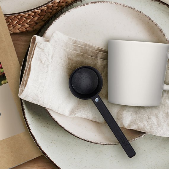 Kahvimitta on valmistettu ekologisesta, elintarvikkeille sopivasta puumuovikomposiitista Suomessa. Kahvimitan tilavuus on 17 ml. Varressa olevalla magneetilla kiinnität mitan kätevästi metalliseen suodatinpussitelineeseen tai kahvin säilytysrasiaan. Tässä kahvimitassa erityistä on tyylikäs muotoilu ja erinomainen käytettävyys.