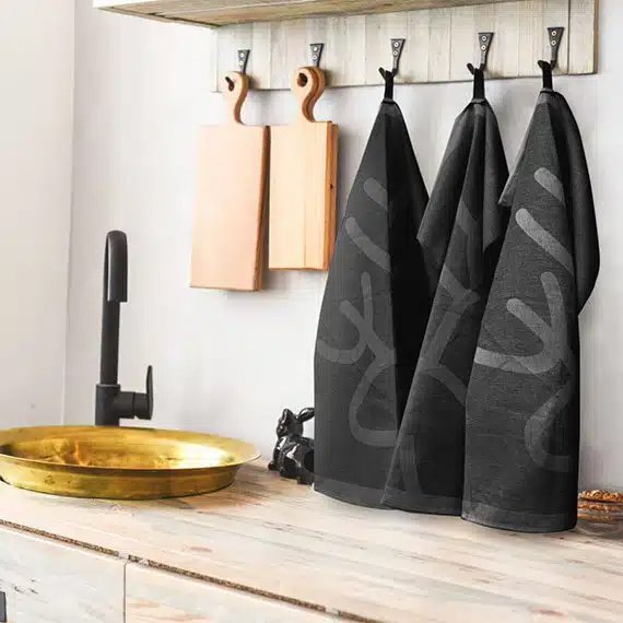 Kotimaista tunnelmaa keittiöön. Ihanalla porokuosilla varustettu tummakuosinen keittiöpyyhe tuo suomalaisen luonnon osaksi sisustusta. Kangas 48 % pellavaa, 52 % puuvillaa. Koko 47 x 70 cm. Väri: musta / harmaa.