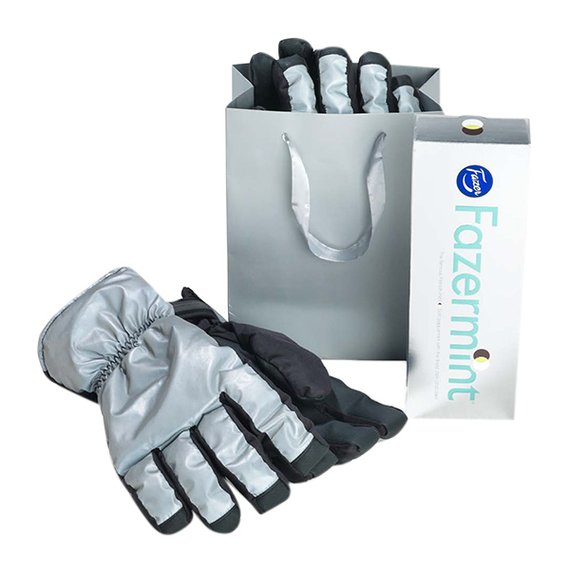 Kaksi upeaa lahjaa samassa! Wintersport hanskat ja laatikollinen Fazerin minttusuklaata. Hanskat pitävät kädet mukavan lämpiminä ja Fazermint mielen hyvänä. Lämpimät hanskat ovat omiaan vaikka lasketteluun tai hurjaan lumisotaan. Tuotteita ei toimiteta valmiiksi pakattuna, jottei lahjapussi rypistyisi.