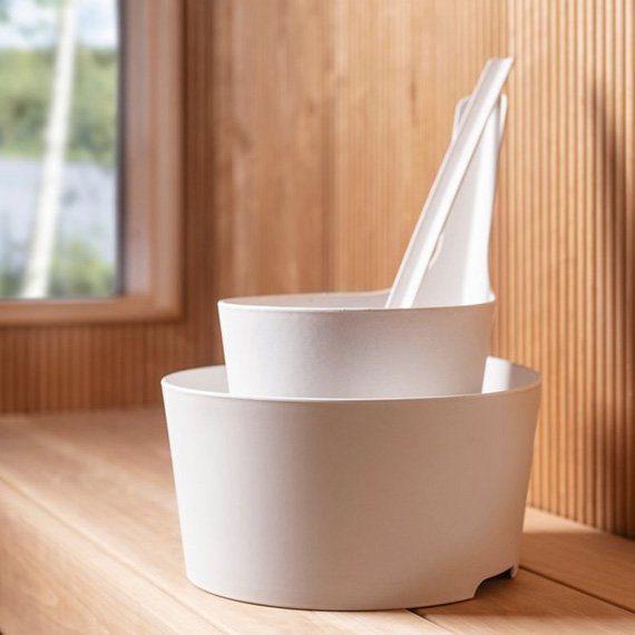 Upea valkoinen Pisara kiulusetti tuo tunnelmaa mökki-iltoihin sekä kotilauteille. Luonnonkuitukomposiittinsa ansiosta tuote sopii mainiosti saunan lämpöön ja kosteuteen. Materiaalina on käytetty ekologista biokomposiittia. Tuote ja materiaali ovat valmistettu Suomessa. Mitat 22 x 38 cm.
