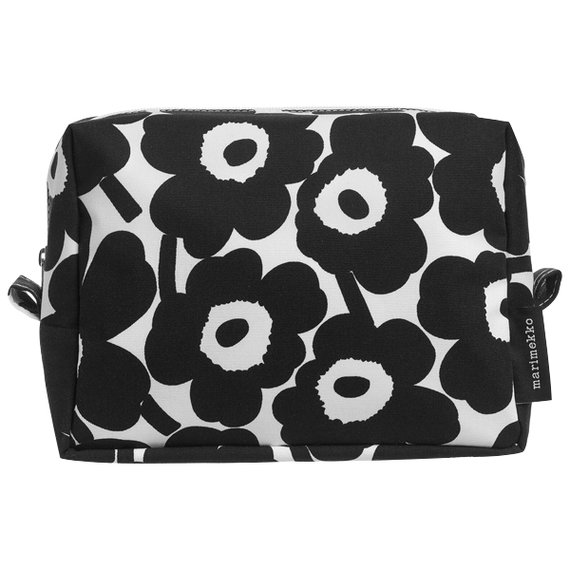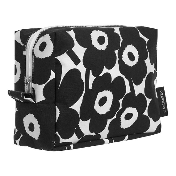 Tilavassa Vilja-kosmetiikkalaukussa on sisällä kaksi isoa taskua sekä pienemmät taskut esimerkiksi meikkisiveltimille. Laukku on valmistettu puuvillapellavasta ja laukun ulkopuolella on lianhylkivyyskäsittely. Vetoketjusuljenta. Korkeus: 17.00 cm, leveys: 23.00 cm ja syvyys: 10.00 cm. Värit: Valkoinen ja musta.