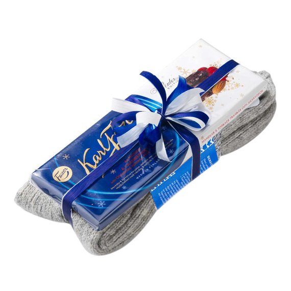 Pehmeät Tapio-villasukat, suomalaista suklaata, hyvä kirja ja takan lämpö. Mikä nautinnollinen tapa viettää syysilta omalla kotisohvalla. Fazerin sininen on kaikkien rakastama klassinen kotimainen herkku. Villasukat ovat miellyttävää villasekoitetta.