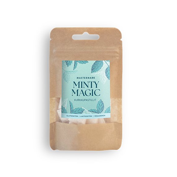 Kotimainen, käsityönä valmistettu mintunmakuinen 30 g kurkkupastilli ihastuttaa maullaan.