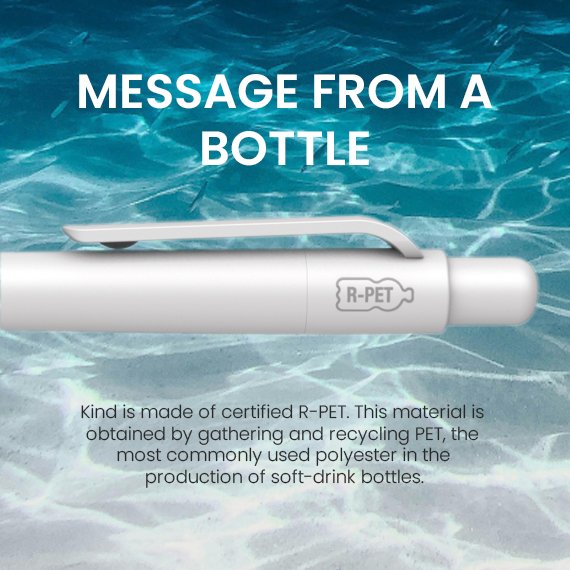 Minimalistisesti muotoiltu Kind kuulakynä on valmistettu kierrätetystä, merestä nostetusta rPET-muovista. Laadukkaan 1 mm terän ja jumbosäiliön avulla kirjoittaa pitkään. Sininen muste. Saatavilla 12 eri värissä mattapintaisena.