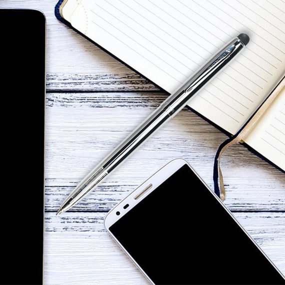 Space Penillä käytät älylaitteitasi siistimmin ja tehokkaammin. Space Penin sulava Cap-o-Matic kosketusnäyttökynä on miellyttävä sekä paperilla että näytöllä. Tyylikkäästi muotoillussa klassikkokynässä on Fisherin sinistä erikoismustetta. Kynän pituus 13,8 cm. Kynä toimitetaan ylellisessä lahjapakkauksessa.