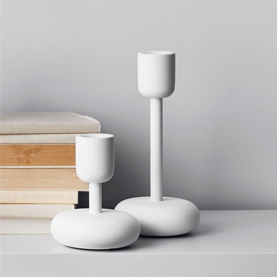 Muotoilija Matti Klenell sai idean Nappula-kynttiläjalkoihin erikoisenmuotoisesta pöydästä ja pöydänjaloista. Klenell loi niistä oman muotoilutulkintansa suunnitellessaan Nappulalle sen tunnusomaisen kapean elegantin jalan ja tukevan pyöreän pohjan. Nappulan persoonallisesta muodosta on tullut modernin pohjoismaisen muotoilun klassikko. Pelkistetyn moderni muoto yhdistyy näyttävästi vintage-elementteihin. Pakkauksessa on kaksi Nappula-kynttilänjalkaa, joiden pituudet ovat 183 mm ja 107 mm. Valkoinen väri tuo esiin kynttilänjalan selkeän ja pelkistetyn muodon. Kynttilänjalat ovat näyttävä pöytäkoriste yksin tai ryhmäksi koottuna. Kynttilöiden lämpimästi kajastava valo luo rauhallisen tunnelman kaikkiin sisustuksiin. Tyylikäs häälahja, syntymäpäivälahja tai tuparilahja. Suositellaan antiikki- ja pallokynttilöitä.