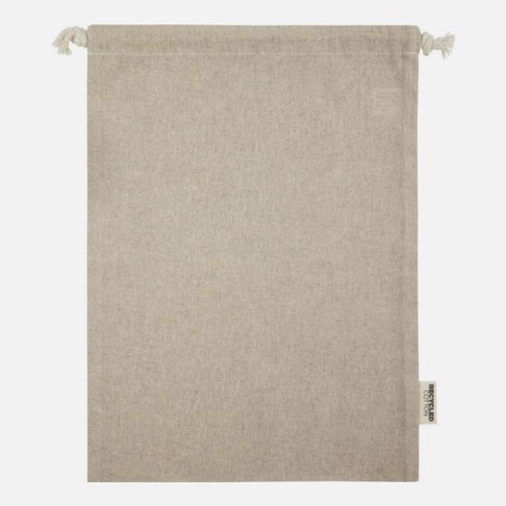 Paketoi lahjasi upeaan GRS-sertifioidusta kierrätyspuuvillasta valmistettuun lahjapussiin. Pussi kiristyy puuvillaisella kiristysnyörillä. Ihanteellinen lahjapussiksi tai tavaroiden säilyttämiseen. Koko 30 x 42 cm. Vetoisuus 4 L. Hinnat sisältävät 1-värisen silkkipainatuksen.