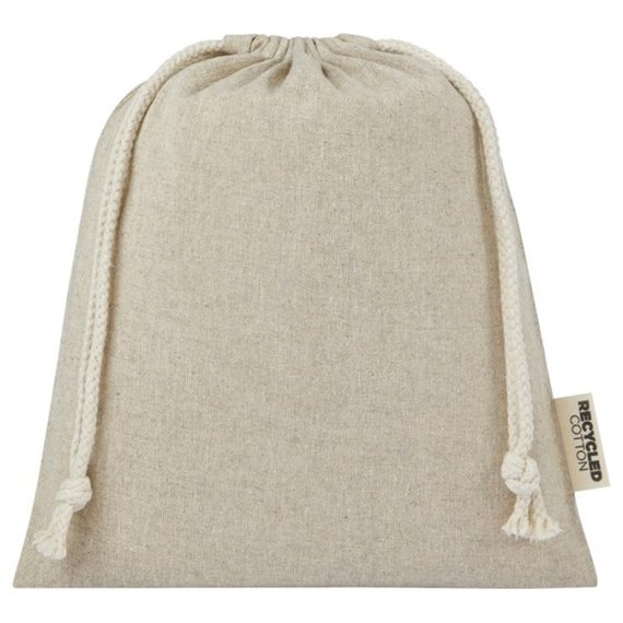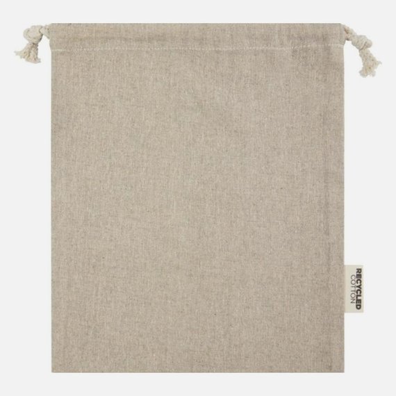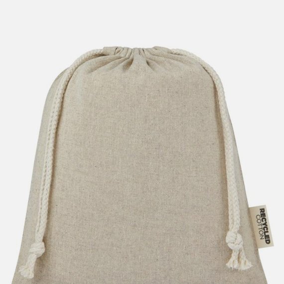 Paketoi lahjasi upeaan GRS-sertifioidusta kierrätyspuuvillasta valmistettuun lahjapussiin. Pussi kiristyy puuvillaisella kiristysnyörillä. Ihanteellinen lahjapussiksi tai tavaroiden säilyttämiseen. Koko 25 x 30 cm. Vetoisuus 1,5 L. Hinnat sisältävät 1-värisen silkkipainatuksen.