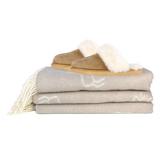 Lahjasetti yhdistää tyylikkään porokuvioidun villahuovan ja aidosta lampaan villasta valmistetut pehmeät tohvelit, jotka tuovat lämpöä ja mukavuutta arkeen. Täydellinen lahja tai oma hemmotteluhetki rentoutumiseen kotona tai mökillä.