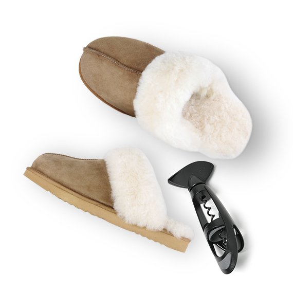Rentoudu pitkän päivän jälkeen ja nauti hiljaisuudesta. Sujauta pehmoiset aidosta lampaan mokasta valmistetut tohvelit jalkaan ja korkkaa viinipullo laadukkaan VacuVinin korkkiruuvin avulla.