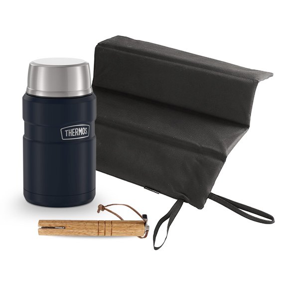 Lahjasetti sisältää Thermos-ruokatermoksen, kokoontaittuvan istuinalustan ja teleskooppivartisen makkaratikun – täydellinen varustus eväshetkiin luonnossa. Yhdessä ne tekevät retkestäsi mukavan, lämpimän ja herkullisen missä tahansa kuljetkin.