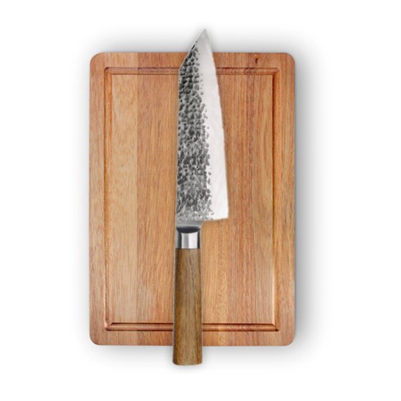 Setti sisältää kauniin akaasiapuusta valmistetun leikkuulaudan ja tarkasti taotun Santoku-veitsen, jotka tekevät ruoanlaitosta sujuvaa ja tyylikästä. Täydellinen yhdistelmä kestävää luonnonmateriaalia ja huippuluokan terästä keittiöösi.