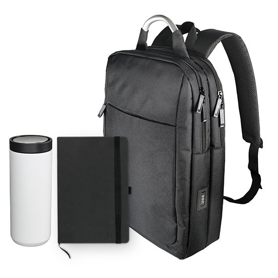 Lahjasetti sisältää kätevän Shuttle-termosmukin, tyylikkään Notes-muistivihkon ja monipuolisen Smart-repun, jotka tekevät arjestasi sujuvaa ja organisoitua. Täydellinen valinta kaupunkielämään, jossa käytännöllisyys ja tyyli kulkevat käsi kädessä.