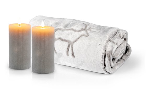 Hellivän pehmeä porokuvioitu fleece-huopa on jokaisen kotoilijan unelma. Huopa tuo mieleen Lapin Lumon ja luonnon rauhan. Huovan päälipuoli on kaunis vaalean harmaa, jonka läpi tulee tummanharmaana poron siluetit. Taustapuoli on sama tumman harmaa kuin porot. Huovan koko on 130 x 180 cm.