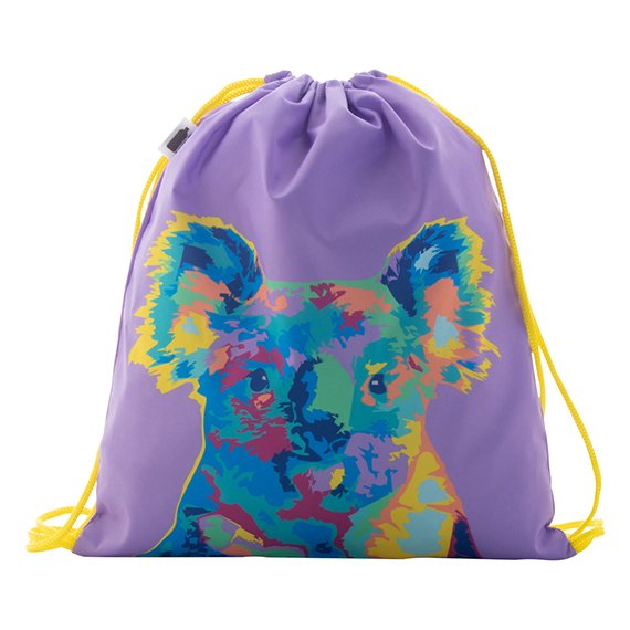 Lasten jumppapussi sublimaatiopainatuksella ja värikkäillä nyöreillä. Jumppapussi koko pinta-ala kustomoitavissa. Valmistettu kierrätetystä 190T rPET-materiaalista. Mitat 260 x 310 mm. Minimitilausmäärä 50 kpl. Hinta sisältää painatuksen koko pinta-alalle.