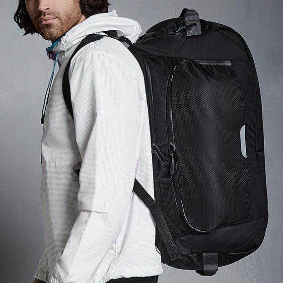 Hunajakennokuvioidusta ripstop-polyesteristä valmistettu vapaa-ajanlaukku muuntautuu myös repuksi. Laukussa pehmustetut kahvat/olkahihnat, vetoketjulliset taskut ja heijastavat yksityiskohdat. Etutaskun sisällä verkkotasku. Laukun mitat 67 x 33 x 42 cm. Tilavuus 60 litraa.