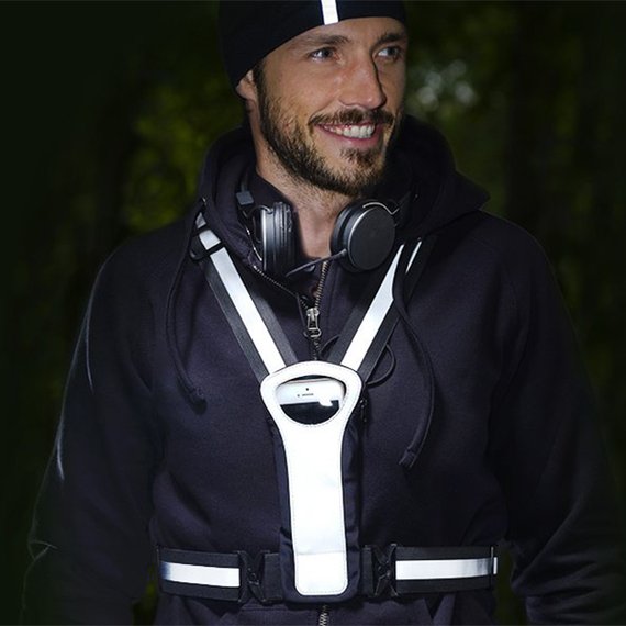 Huomio-sporttiliivillä varmistat reilusti näkyvyytesi lenkillä tai pyöräillessä, kaikissa sääolosuhteissa. Mukavasti istuvan sporttiliivin hihnoissa on heijastavat nauhat, jotka loistavat hämärässä pitkälle. Yhden koon heijastinliivi sopii kaikille. Liivin olka- ja vyötäröhihnat ovat joustavat ja säädettävät, ja vyötäröllä on klipsikiinnitys. Liivin etupuolella on tasku, johon mahtuu avaimet ja kortit. Taskun koko 7 x 13,5 cm. Sporttiliivi on polyesteriä ja nailonia. Toimitetaan lahjapakkauksessa.