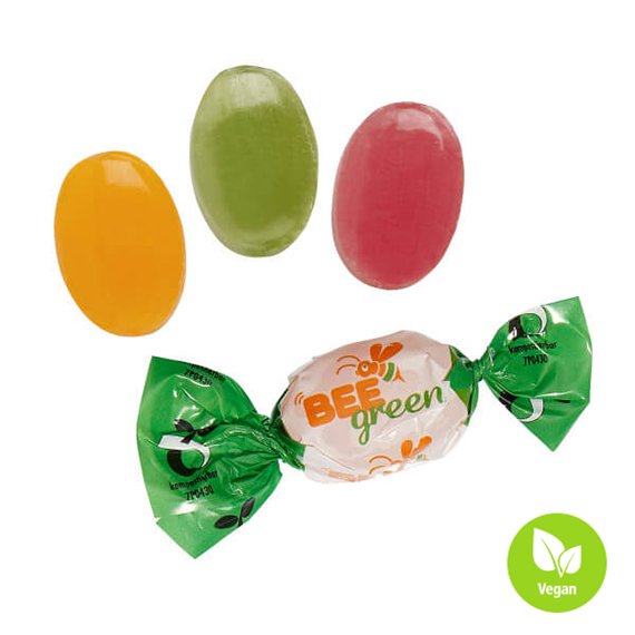 Perinteinen käärepaperikarkki vie kielen mennessään. Valittavissa valkoinen tai läpinäkyvä kompostoituva käärepaperi. Yhden karkin paino n. 5 g, koko n. 60x20 mm. Pakattu 1 kg/pss, 5 kg/ltk. Säilyvyys 18 kk. Hinnat sis. 1-5 väripainatuksen ja aloituskulut. Minimi tilausmäärä 25 kg, hinta EUR / kg.