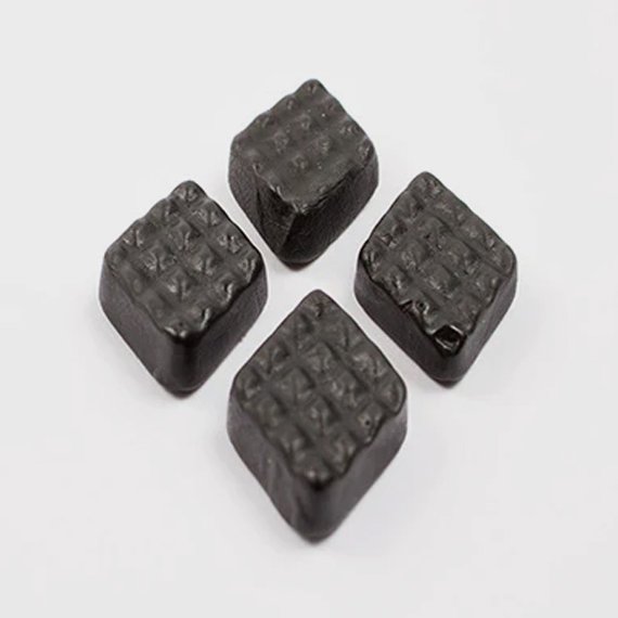 Ainesosat: Sokeri, glukoosisiirappi, muunnettu perunatärkkelys, liivate, salmiakki (ammoniumkloridi), lakritsiuute, vesi, väri (E153), pintakäsittelyaine (E901).