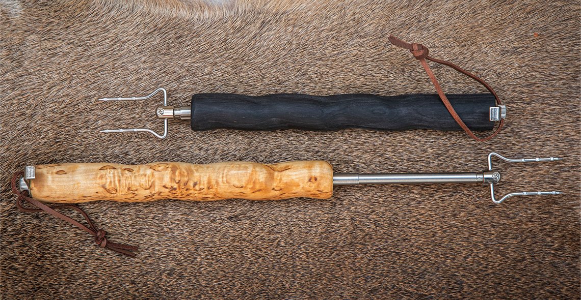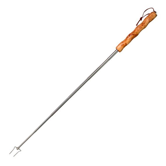 Kotimainen, Lapissa käsityönä valmistettu makkaratikku teleskooppivarrella. Tyylikäs kahva visakoivua, pyörimätön varsi ruostumatonta terästä. Pituus täyspitkänä 80 cm. Pakkaus lisähinnasta kts. tuote T48426A4.