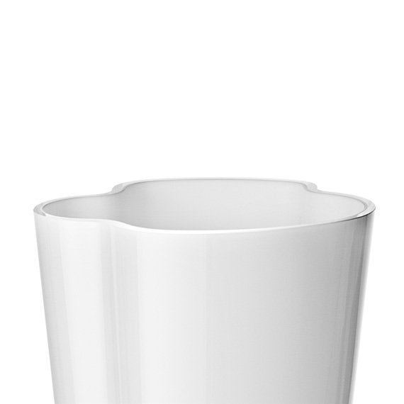 Alvar Aalto yhdisti selkeän modernin muotoilun ja käsityöläisten erikoisosaamisen luodessaan klassisia sisustusesineitä, joissa funktionaalisuus yhdistyy veistokselliseen muotoon. Suomalaisen luonnon vaikutus näkyy Alvar Aallon luomassa epäsymmetrisessä aallon muodossa, jolla Aalto voitti vuoden 1937 Pariisin maailmannäyttelyyn liittyvän suunnittelukilpailun. Siitä on tullut yksi modernin pohjoismaisen muotoilun ajattomista klassikoista. Jokainen Aalto-maljakko valmistetaan yksittäin Iittalan lasitehtaalla monivaiheisessa valmistusprosessissa. Lasimaljakko saa alkunsa suupuhalluksella, minkä jälkeen se katkaistaan lasimassasta käsin ja hiotaan lopulliseen muotoonsa. Pitkävartiset kukat pääsevät oikeuksiinsa korkeassa maljakossa. Valkoisesta lasista valmistettu maljakko on monikäyttöinen ja veistoksellinen sisustuselementti. Mitta 220 mm. Vain käsinpesu.