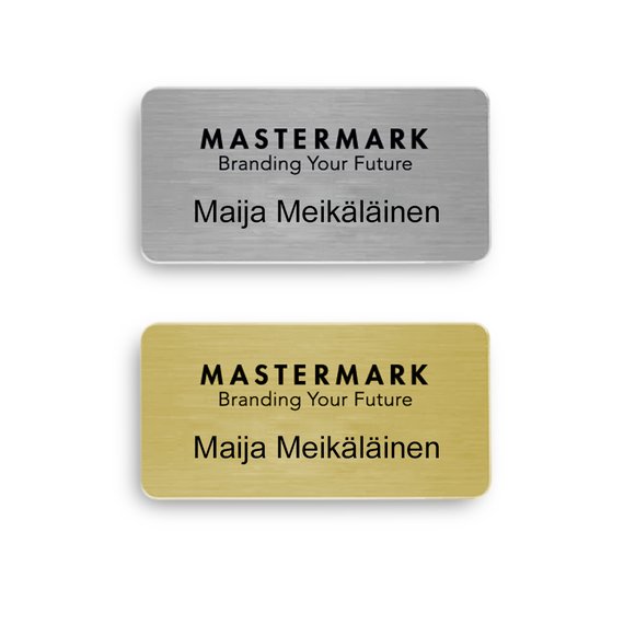 Metallinen nimineula on ajaton klassikko, johon saat nimikoinnit kaiverrettuna. Messinkinen nimineula on saatavilla useammassa erilaisessa tyylikkäässä muodossa ja kultaisena tai hopeana. Toimitetaan suojakotelossa. Esimerkkihinnat sisältävät hakaneulakiinnityksen ja 1-värimerkkauksen. Aloituskulu 65 €. Kysy tarjous omasta toteutuksestasi!