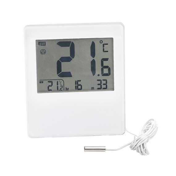 Petollisia lämpötilavaihteluja vastaan lämpömittaria tarkempaa asetta saa hakea. Digitaalinen lämpömittari näyttää sisä- ja ulkolämpötilan lisäksi myös ajan. Sen avulla voit mitata vaikka pakastimen kylmyyden. Valkoinen pelkistetty design mukailee tämän hetken älylaitemuotoilua. Vaivaton asennus, joko seinälle roikkumaan tai pöydälle seisomaan ja ulkoilma-anturi ulos tähystämään. Johdon pituus 1,3 m. Mitat 96 x 17 x 110 mm. Toimitetaan lahjapakkauksessa.