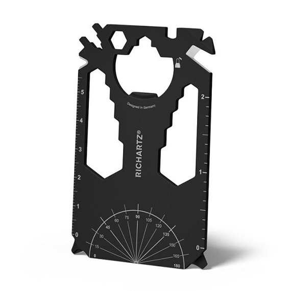 Kätevä luottokortin kokoinen monitoimityökalu, joka on valmistettu korkealaatuisesta, mustaksi pinnoitetusta ruostumattomasta teräksestä. Kompakti monitoimityökalu on välttämätön jokapäiväinen kumppani. Mitat 81,5 x 50,5 x 2 mm. Paino 51 g.