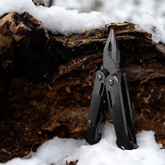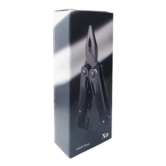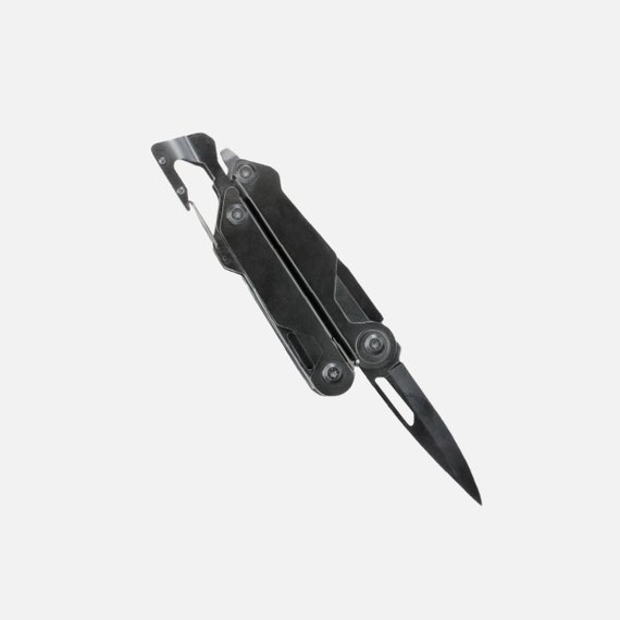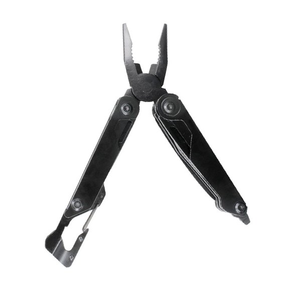 Pieni ruostumattomasta teräksestä valmistettu monitoimityökalu mustalla pinnoitteella. Kaikki tarvittava löytyy 12 eri toiminnon avulla: 2x pihdit, kaapelinkuorijat, veitsi, saha, 3x ruuvimeisseliä, laatikkoleikkuri, tölkin- ja pullonavaaja ja karabiinikoukku. Mitat (suljettuna) 11,7 x 3,8 x 1,95 cm. Paino 205 g.