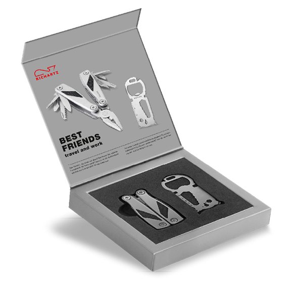 Hyödyllinen työkalusetti sisältää taskukokoiset 16- ja 12-osaiset monitoimityökalut. Molemmat monitoimityökalut on valmistettu korkealaatuisesta mattapintaisesta ruostumattomasta teräksestä.
