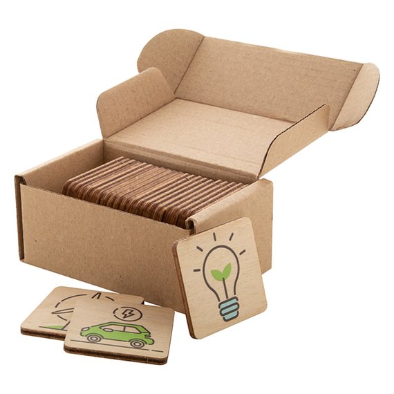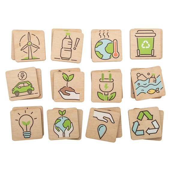Laminoidusta koivusta valmistettu 24 palan muistipeli luonnosuojelu teemalla. Laatan koko on 40 x 40 mm, paino on 90 g. Muistipeli on pakattu kartonki pakkaukseen, jonka mitat 35 x 25 x 34 cm. Hinnat sisältävät 1-väripainatuksen jokaisen laatan taustapuolelle.