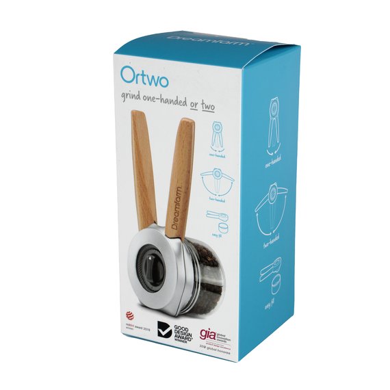 Ortwo on maailman ensimmäinen maustemylly, jossa yhdistyy yhdellä kädellä tekemisen helppous sekä kahdella kädellä tekemisen nopeus ja voima. Palkitussa Ortwo-maustemyllyssä on todella terävät, keraamiset terät, jotka ovat säädettävissä. Myllyllä saat tehtyä juuri haluamaasi rouhetta mausteista, aina superhienosta karkeampaan rouheeseen. Sopii kaikenlaisille mausteille, myös suolalle. Koska terät ovat keraamisia, ne eivät tylsy tai ruostu. Myllyn täyttäminen on helppoa lasisen, irrotettavan ja suurialaisen maustesäiliön ansiosta. Säiliö kestää konepesun. Myllyn pituus 5,1 cm, leveys 6 cm. Mausteet eivät sisälly pakkaukseen. Materiaalit: borosilikaattilasi ja polypropyleeni.