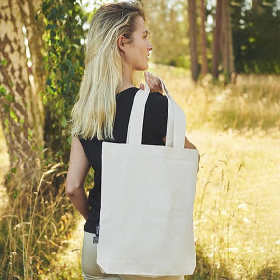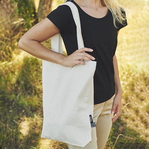 Valmistettu kestävästä 210gsm Reilun kaupan luomupuuvillasta. Kassin jännityskohdat ovat vahvistettu, jotta se kestää pidempää kulutusta vuodesta toiseen. Mitat 42 x 38 x 7 cm. Kokonaispituus kahvoilla 66 cm. 100 % orgaanista puuvillaa.