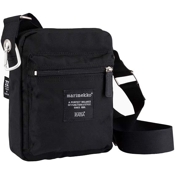 Cash & Carry -olkalaukku on valmistettu kierrätetystä polyamidista. Laukussa on vetoketjusuljenta, kaksi pientä vetoketjutaskua ulkopuolella ja yksi vetoketjutasku sisäpuolella. Säädettävä olkahihna on valmistettu nailonista ja siinä on metallinen lenkki pienten tavaroiden kiinnittämistä varten. Mitat 16 x 21 x 6 cm. Kantokahvan pituus 150 cm.