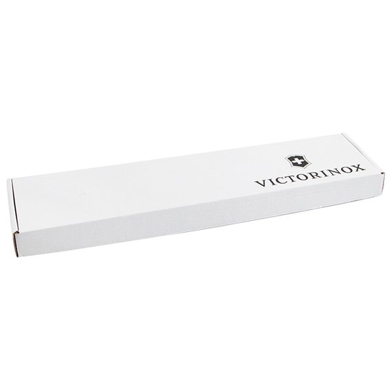 Valkoinen pakkaus ruskealla sisäosalla. Kannessa musta Victorinox-painatus. Pakkauksen materiaali 1,5 mm aaltopahvi. Sisämitat 347 x 87x 25 mm. Hinta sisältää pakkaustyön.