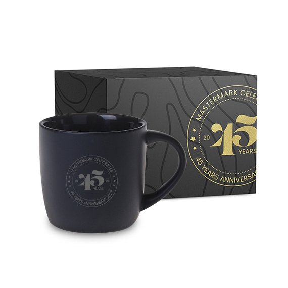 Suosittu Handy Supreme mainosmuki, jossa on moderni, matta lasite. Kiiltävä sisäpuoli luo erinomaisen kontrastin mustan satiinisen ulkopinnan kanssa. Mitat 85 x 92 mm. Vetoisuus 300 ml. Muki toimitetaan yksittäispakatussa aaltopahvista valmistetussa pakkauksessa, johon on saatavilla digipainatus. Pakkauksen mitat 128 x 89 x 104 mm.