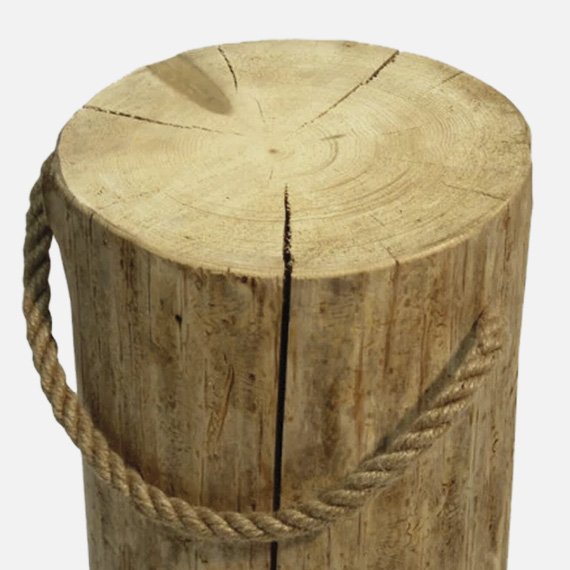 Käsintehty ainutlaatuinen design kaluste on valmistettu puusta ja hamppuköydestä. Kun käytät Pölkkyjä ulkona, suosittelemme ylä- ja alapintojen käsittelemista puuöljyllä tai lakalla. Huomaa, että tuotteen luonnollisten ominaisuuksien vuoksi sen halkaisija voi vaihdella. Kuvat ovat viitteellisiä, sillä jokainen pölkky on uniikki. Korkeus 45 cm.