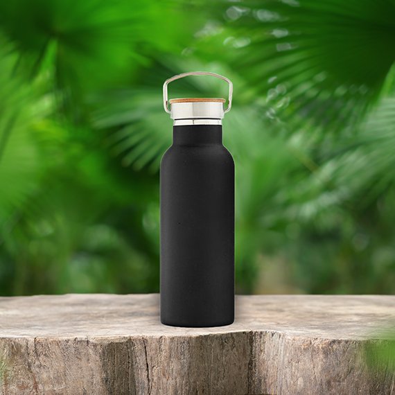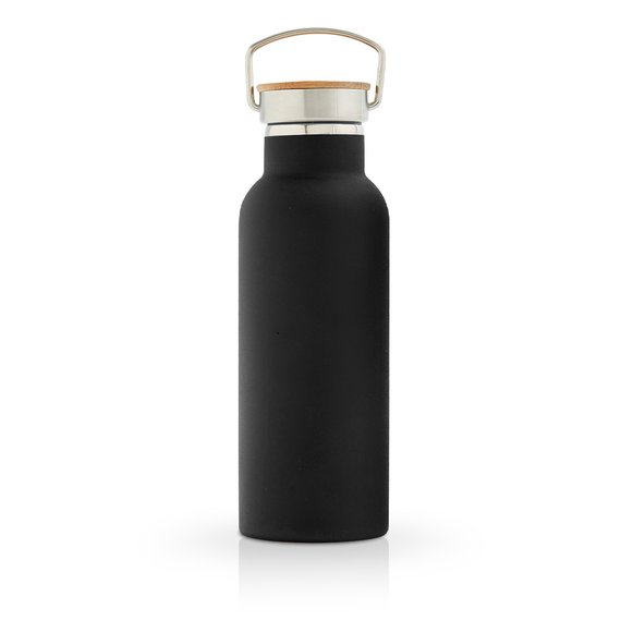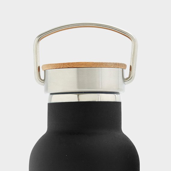 Ruostumattomasta teräksestä valmistettu juomapullo kauniilla bambukorkilla. Korkissa on myös pieni kahva, josta pulloa on helppo kantaa mukana. Kaksinkertainen seinämä pitää juoman pullossa kuumana 10 tuntia ja kylmänä 20 tuntia. Suositellaan käsinpesua. Koko: 22 cm x 7,2 cm. Tilavuus: 500 ml.