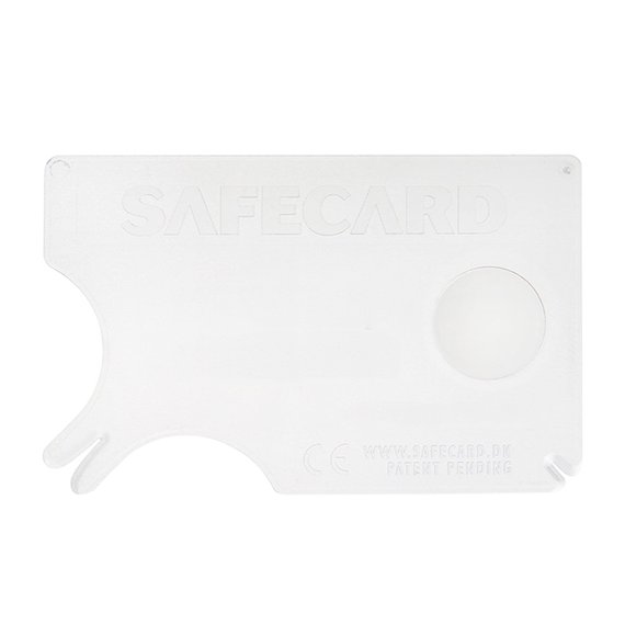 SafeCard on kehitetty yhteistyössä punkkeihin erikoistuneiden asiantuntijoiden kanssa. SafeCardin avulla punkki poistetaan hitaalla liukuvalla liikkeellä helposti ihon pinnalta. Näin minimoidaan punkkien levittämien vaarallisten bakteereiden tartuntaristki. Kortti on suunniteltu siten, että sitä voidaan käyttää vartalon kaikissa osissa. Kortissa on suurennuslasi punkin tarkastelua varten.Materiaali: muovia, koko: 5,4 cm x 8,5cm (normaalin luottokortin kokoinen). Yksittäispakattu suljettavaan muovipussiin, johon on printattu kuvalliset ja sanalliset käyttöohjeet. Hinnat yksiväripainettuna. Digipainatus myös mahdollista (pyydä tarjousta omasta toteutuksesta). Toimitusaika noin 4 viikkoa.