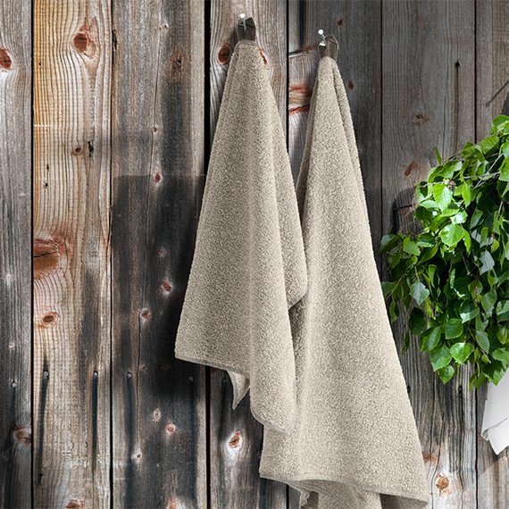 Suomalaiseen kotiin ja saunaan sopiva pyyhe on tuntumaltaan mukavan karkea ja erittäin imukykyinen. Harmaanruskea väri on lämmin ja kotoisa. Pyyhkeen ripustuslenkit ovat tukevat ja näyttävät. Pyyhkeeseen saa upeasti logon tyyliin sopivasti brodeerattuna tai tyylikkäästi erillisellä kangasmerkillä. Materiaali on laadukasta froteeta, jossa on 60 % pellavaa ja 40 % puuvillaa, ripustuslenkit ovat 100 % pellavaa. Pyyhkeet kestävät konepesun jopa 60 asteessa. Huomaathan, että pellavalle ominaiseen tapaan, tuote saattaa pesussa pienentyä kooltaan hieman, kuitenkin maksimissaan 10 %. Design from Finland. Valmistettu Liettuassa. Koko: 50 x 75 cm.